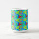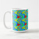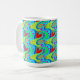 Tasse in einem lebendigen mehrfarbigen Design mit roten Herzen.