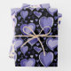 Purple Hearts Pattern Drawing Valentine`s Day Wrapping Paper Sheets. Hand drawn heart on a black, pink and beige background. For Valentine`s day or to show your love.