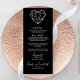 Entspannen Sie bei Ihrem Hochzeitsempfang mit unserer eleganten Hochzeitsmenükarte, die ein Herzdesign von Heartstrings und moderne Kalligraphie aufweist. Die leicht zu lesende Typografie sorgt dafür, dass die Gäste die Menüführung leicht durchlaufen können und gleichzeitig eine Touch Eleganz in der Tischumgebung hinzufügen können. Ideal für moderne Paare, die ihre Gäste mit einer stilvollen und romantischen Touch an ihrem besonderen Tag beeindrucken möchten.