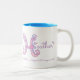Decorated hand drawn letter with your own name beginning with H and name meaning mug. Pretty heart and flower capital H doodled typographic design featuring hearts and flowers and the words Heather Beautiful flower. Independent & compassionate in blue, pinks and purple colors. © Unique art and design by Sarah Trett for www.mylittleeden.com on zazzle