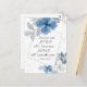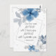 Die Postkarte der Inspirationsschrift zeigt ein einfaches, florales Aquarellbild mit einem modernen Doppelrahmen, der mit blauen und grauen Blume und Blätter geschmückt ist. Es verfügt über Bibel Verse Hebräisch 13:5, ... Gott hat gesagt: "Nie werde ich dich verlassen, nie werde ich dich aufgeben."