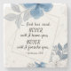 Der Untersetzer aus Inspirationsschriftstein zeigt ein einfaches, blumenfarbenes Aquarellbild mit einem modernen Doppelrahmen, der mit blauen und grauen Blume und Blätter geschmückt ist. Es verfügt über Bibel Verse Hebräisch 13:5, ... Gott hat gesagt: "Nie werde ich dich verlassen, nie werde ich dich aufgeben."