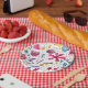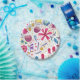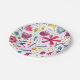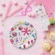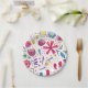 Ein Aquarellbild von Blume und Blätter in kräftigen Farben, verstreut auf weißem Hintergrund. Herrliche gemusterte Papier-Party-Teller, um Ihre koordinierende Party-Sammlung.