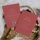 Diese rustikale rote Sommerboho QR einfache Baby Dusche Einladung aus der Heidi Collection ist perfekt für eine einfache Babydusche. Das Erdbeerrodesign besticht durch eine moderne bohenhafte, undekorierte Typografie mit einem einzigartigen minimalistischen Stil. Personalisieren Sie den Rücken mit einer Gender-Ankündigung, Büchern für das Baby, Windelverlosung, QR-Registrierungscode und/oder anderen zusätzlichen Informationen, die für Ihre Gäste hilfreich sein könnten.