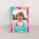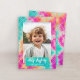Fügen Sie diesem hellen und fröhlichen Farbstoff ein familiäres Foto hinzu, das nicht traditionell im botanischen Stil gehalten ist. Dieses kann für jeden Weihnachtsgrüßen verwendet werden - glückliche Feiertage, Jahresgrüße und mehr. Auf der Vorderseite befindet sich ein Foto mit einem angesagten Script-Schriftart. Auf der Rückseite ist ein modernes kariertes Muster über einem farbenfrohen, rosa und aquamarinen Farbmuster erkennbar. Die Hintergrundfarbe kann im erweiterten Designbereich geändert werden.