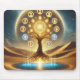 Im Herzen einer endlosen Wüste steht ein göttlicher Baum des Lebens hoch und strahlt goldene und saphirische Energie aus. Seine leuchtenden Äste erstrecken sich in Richtung Himmel, verziert mit schwebenden numerologischen Symbolen (1 bis 9), die mit heiliger Weisheit leuchten. Die Wurzeln des Baumes sind tief eingebettet in eine geheimnisvolle, glühende Oase, in der das schimmernde Wasser sein ätherisches Licht reflektiert. Um ihn herum erstrecken sich riesige Sanddünen unter einem Himmel voller funkelnder Sterne und einem riesigen Vollmond, die eine Atmosphäre der Mystik und des Wunders schaffen.