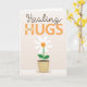 Senden Sie nach der Operation jemanden glückliche Heilwünsche mit dieser einzigartigen und lustigen Illustrationskarte, die die Nachricht "Heilen von HUGS wie Sie sich von der Operation erholen" mit Blume im Pot im Hintergrund enthält. Das "H" in "HUGS" beinhaltet einen lächelnden Binde-Illustrationsakzent. Inside hat diesen Vers von Sprichwörtern auf innen links, "Ein fröhliches Herz tut gut wie Medizin, und innen rechts hat diese Platzhalter-Nachricht, kann aber vollständig an Ihre Bedürfnisse angepasst werden: "Heilende HUGS und SMILES auf Ihren Weg, und hoffen, dass Sie sich jeden Tag mehr wie Ihr normales Selbst fühlen. BALD GUT!"