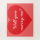 Dieses Puzzle mit einem geformten roten Herz überdeckt durch den Vorlagentext "Heiraten Sie mich?" in einem weißen, kursiven Schriftart. Personalisieren Sie mit dem Namen Ihrer Freundin oder Ihres Freundes. Passen Sie Stil, Größe und Farbe des Schriftartes sowie die Hintergrundfarbe an.