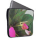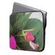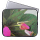 Das Kunstwerk auf diesem 15" Laptop Sleeve ist ein Originalfoto von MaeFlowers von einer neuen Guinea impatisiert Pflanze, in Blüte mit heißen rosa Blume. Das Foto ist eine Nahe, die Teile der leuchtend rosa Blume Blütenblätter zeigt, eine Blume in einer blassrosa Farbe und die Überreste einer früheren Blüte. Die dunkelgrünen Blätter der Ungedulen sind lang und spitz, mit gezackten Kanten auf einem warmen, hellgrauen Hintergrund. Das Design hat eine Tapisserie.