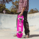 Das brandneue Hot Pink Skateboard Deck vereint Stil und Leistung auf höchstem Niveau! Dieses aus langlebigen Materialien gefertigte und für Stil und Funktionalität konzipierte Skateboarddeck ist die perfekte Leinwand für Ihre Kreativität. Jedes Deck kann personalisiert sein, mit individuell anpassbaren Namensoptionen, die Ihre eigene Identität und Ihren Stil widerspiegeln. Ob für Kinder, Mädchen oder Jungen, unser Hot-Pink-Skateboard-Deck wird sicher den Kopf im Skatepark drehen. Dieses Deck ist in verschiedenen Größen für den Anzug jeder Skater erhältlich: 7 3/4" 7/8" 8 1/8" 8 1/4" 8 1/2" Für Vielseitigkeit konzipiert und eignet sich hervorragend für die Straßeneroberung oder die Rampen im Skatepark. Dieses Deck bietet ein perfektes Gleichgewicht zwischen Stabilität und Manövrierfähigkeit, sodass Skater aller Altersgruppen ihre Grenzen überschreiten und ihr Potenzial entfesseln können. Nehmen Sie an der Skaten-Revolution mit unserem Hot Pink Skateboard Deck teil und erleben Sie den Nervenkitzel des Reitens im Stil!