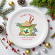 Heiße Kakao-Cup Teller mit grüner heißer Schokolade Kakao-Cup auf weißem Hintergrund, Familienname und Text Warmest Wünsche, Happy Holidays. Karo unten unsere Kollektion für weitere Produkte mit diesem Design.