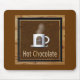 Eine digitale Darstellung einer Tasse dampfender heißer Schokolade auf einem hölzernen Wandschild.
