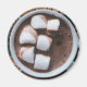 Heiße Schokolade in einer Tasse und Untertasse, schwebende cremige Marshmallows. Sieht aus wie dünn, schokoladenartig und köstlich.