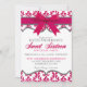 Diese weibliche, funkelnd 16. Geburtstag-Geburtstags-Party Einladung kennzeichnet einen Glitterdamast-Musterhintergrund des heißen Rosas mit einem hellen rosa Band und einem Bogen, welche die Spitze betonen. Verfügbar in den kundenspezifischen Farben.