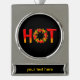 Heiß mit dem Buchstaben O aus einem Flammenkreis mit Chili-Paprikaschoten.