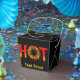 Heiß mit dem Buchstaben O aus einem Flammenkreis mit Chili-Paprikaschoten.
