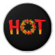 Heiß mit dem Buchstaben O aus einem Flammenkreis mit Chili-Paprikaschoten.