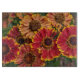 Auf dieser großen, dekorativen, gläsernen Schneideplatte, die das Foto von goldfarbenem und orangefarbenem Helenium Herbstblütenblüte zeigt, würfeln und würzen Sie Ihr Essen sicher. Ein schönes, blumengeschmücktes Design!