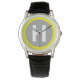 Uhr, Vintage Männeruhr mit schwarzem Lederarmband