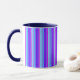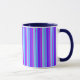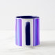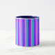 Creative, hellblau lila violett gestreifte Tasse. Blaue lila violette Streifen Streifen Tasse. Hellblau gestreifte Tasse Farbgestaltung. Künstlerische Original Streifen Tasse. Lebhafte blaue Tasse gestreift. Entwurf geometrischer Linien