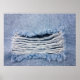 Hellblaue abgerissene Jeans-Textur. Poster