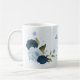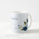 Schöne romantische Kaffeemaschine mit marineblau-blauen und hellblauen Blumen und einigen hübschen Blätter. FÜR WEITERE PRODUKTE klicken Sie auf die Sammlung oben oder kontaktieren Sie mich