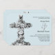Diese elegante christliche Hochzeitseinladung verwendet katholische Benennung (nuptial Masse, Sakrament) und kennzeichnet ein reizendes und ungewöhnliches Vintages Blumenkreuz. Hintergrund ist ein sehr hellblaues, aber Sie können jede mögliche Hintergrundfarbe besonders anfertigen und wählen.