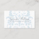 Einfach mit beruflicher Eleganz beschreibt diese hoch entwickelte subtile Damast-Geschäfts-Karte mit einem hellblauen Damast blühen Hintergrund. Diese trendy und moderne Visitenkarte ist für eine upscale Butike oder ein kreatives Feld wie Innenarchitektur perfekt und kann mit Ihren Geschäftsdetails leicht besonders angefertigt werden. Für mehr Kundenbezogenheitswahlen klicken Sie an besonders anfertigen es Knopf.
