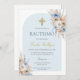 Hellblauer Boho Blütentaufe Einladung