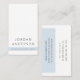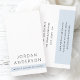 Berufliche Visitenkarten oder persönliche Visitenkarten werden in Weiß und hellblau geblockt. Anpassbarer Name und Titel/Firmenname auf der Vorderseite. Auf der Rückseite befindet sich ein anpassbares Vorlagenfeld für Ihre Kontaktinformationen.