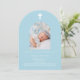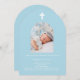 Hellblauer Foto Bogen Taufe Einladung