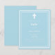 Ein hellblauer Hintergrund mit weißem Rahmen und weißem Kreuz Persönlich gestalten und Details hinzufügen. Weißer Text. 1 Blatt = 1 Einladung mit Druckkante bis Kante.