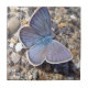 Design: Ein Ō hellblauer Schmetterling (Bläuling) auf grauen Kiessteinchen