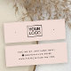 Hellrosa oder benutzerdefinierte Farbe Ohrring Mini-Produkt-Display-Karte mit zentrierter benutzerdefinierter Logo-Vorlage und Social-Media-Symbole. Die Ohrring-Hilfslinien können durch Hinzufügen und Entfernen von Leerzeichen im Vorlagenfeld und durch Verschieben des gesamten Elements im Entwurfstool eingestellt werden.