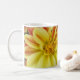 Schöne nahe hohe Fotografie von zwei hell und bunte Dahlien in der vollen Blüte. Finden Sie diesen Entwurf auf zusammenpassendem Porto, mousepads, Tassen und mehr.
