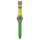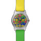 Eine lustige, farbenfrohe Armbanduhr mit einer funky geometrisch gemusterten, bunten Armbanduhr sieht atemberaubend aus mit ihrem zwei Töne Armband in einer Kombination aus grün und gelb. Mit klaren weißen Zahlen ist es einfach, die Zeit zu bestimmen.