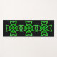 Dieser Yogamat ist schwarz mit drei leuchtend grünen irischen keltischen Knots mit einem Kreis in der Mitte und gedeckten Kanten.