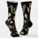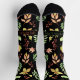 Ein Muster aus lebendigen Herbstblättern auf schwarzem Hintergrund. Platz für Ihren Namen oder Text in Rot und Grün auf dem Fuß. Personalisieren Sie den Text, um diese Socken zu Ihren Socken zu machen.