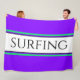 Dieses elegante Design besticht durch moderne Typografie in einem breiten Streifen aus weißem Zentrum, der mit schwebenden, grün gestrichenen Pinienpinstreifen auf einem lebendigen lila Hintergrund hervorgehoben wurde. SURFING-Text wurde über das Design im mittleren Streifen geschrieben. Farben und Text können personalisiert sein.