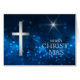 Hier ist eine schöne Weihnachtsgrüßkarte, die jeden daran erinnert, was Weihnachten wirklich bedeutet. Die Vorderseite zeigt einen sehr hellen Stern gegen einen sternblauen Nachthimmel. An der links Seite ist ein leuchtendes Silberkreuz. Der blaue Text auf der Seite sagt MERRY CHRIST-MAS. Das Innere hat den wunderbaren Vers von Matthew 1:21, und Ihren eigenen Text.