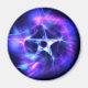 Dieser Magnet hat mir ein lila und blaues Fraktal eines 5-Punkte-Sterns in einem umgebenden Farbwirbel auf einem dunklen Hintergrund.