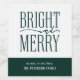 Moderne minimalistische "BRIGHT and MERRY" dunkelgrün Typografie, Ferienflaschen Etiketten. Funktionen, zwei Textzeilen für Ihre Nachricht und Name in Weiß auf der Auswahl der grünen Farbblöcke.