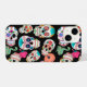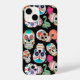 Helle und farbenfrohe Bilder von Zuckerschädeln machen ein lustiges Muster auf diesem einzigartigen Handy-Fall. Es gibt mehrere verschiedene Schädelbilder, alle individuell in verschiedenen Farben und auf einem dramatischen schwarzen Hintergrund platziert.