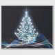 Einfaches und fröhliches Design eines hellen Weihnachtsbaumes, weißer Schneeflocken und blauer Wellen. Geeignet für jeden Geschmack, moderne Wohngestaltung und Accessoires.