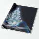 Heller Weihnachtsbaum, weiße Schneeflocken, Blaue Geschenkpapier