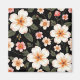 Rosa und weiße Blume und Blätter auf schwarzem Hintergrund.