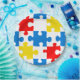 Helles, farbiges Puzzlespiecmuster Pappteller