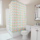 Herringbone Muster Design Duschvorhang in hellen, lustigen Farben wie Rosa, Blau, Grün, Gelb und Pfirsich mit Weiß.