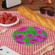 Helles, grünes und rosa Blume-Muster. Dieses Design zeichnet sich durch eine wunderschöne hellgrüne und rosa Blume aus.
