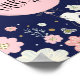 Adorable Abbildung eines niedlichen Hasen mit einem rosa Ballon mit "Dream Big Little One" Zitat Starry Marvy Himmel / Rosa & Weiß Blume / Marine & Rosa Kinderzimmer Dekoration für Mädchen